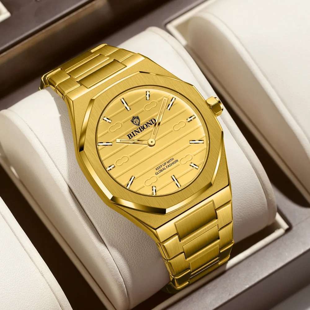 05: BINBOND 818 Full Golden | Brand Casual Men’s Quartz Watch Octagonal Luxurious And Fashionable