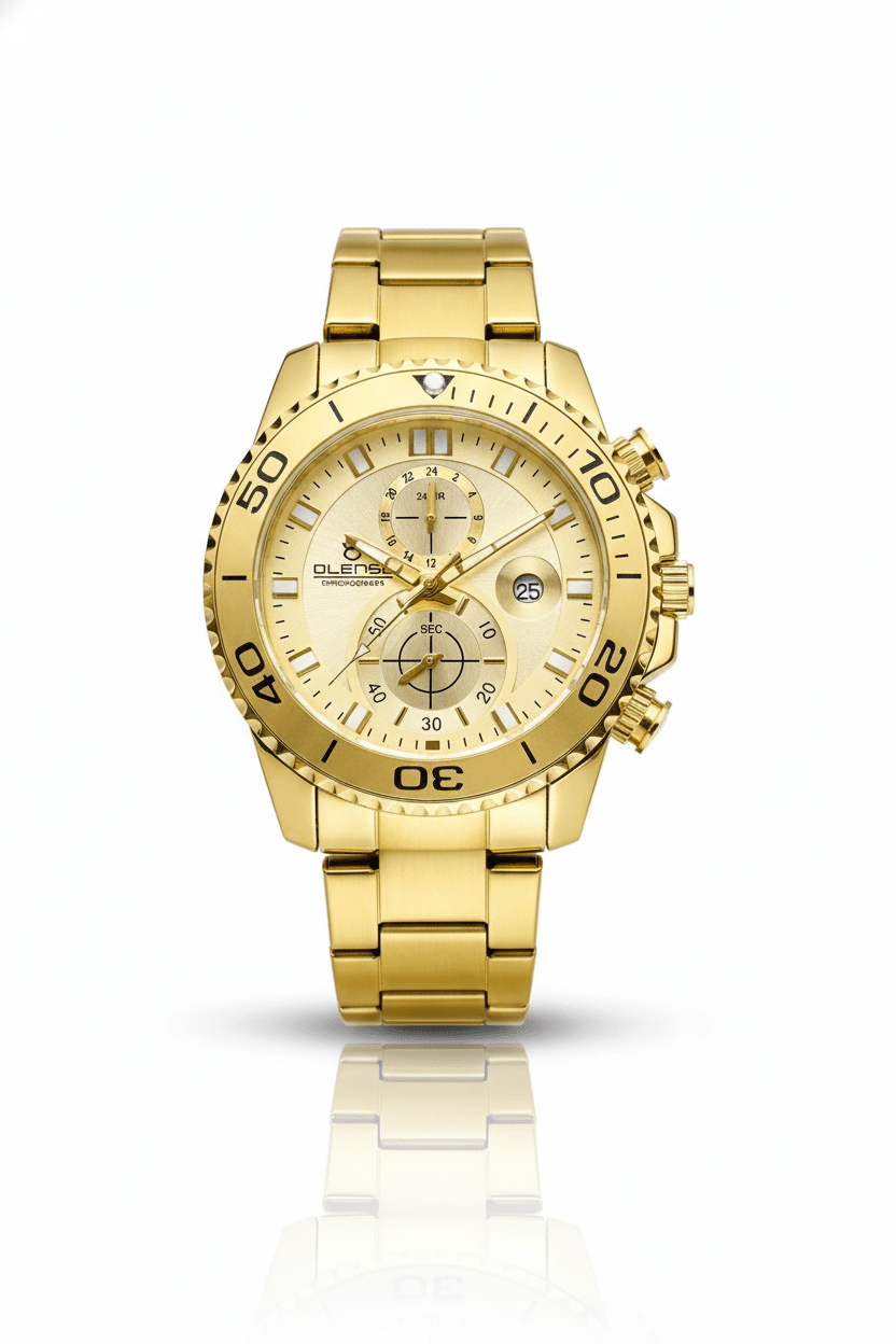 08: OLENSE 9009m New Stainless Steel Mens Watches Classic Six Pointers Multifunction Quartz Watch Casual Waterproof Date Chronograph Clock