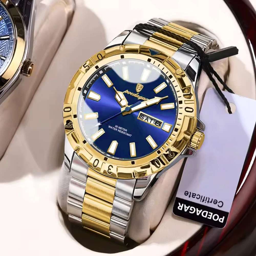 12: POEDAGAR 959 Golden Blue | Luxury Quartz Man Watch Luminous Date Week Men Watch Military Stainless Steel Men’s Watches Sport Male Clock